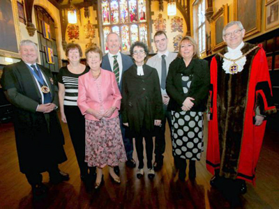 Freeman of Durham Susan Lyle. left, her sister June MacKay, Eric Bulmer, the Reverend Joan Donkin and Jonathan Forster, 19, with his mother, Heather, right, following the event at the Town Hall