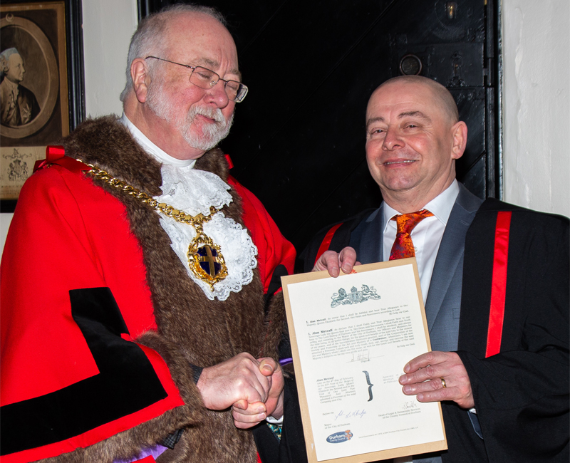 Council customer services officer Alan Metcalf made one of the shortest journeys ever to take to oath of a Freeman.