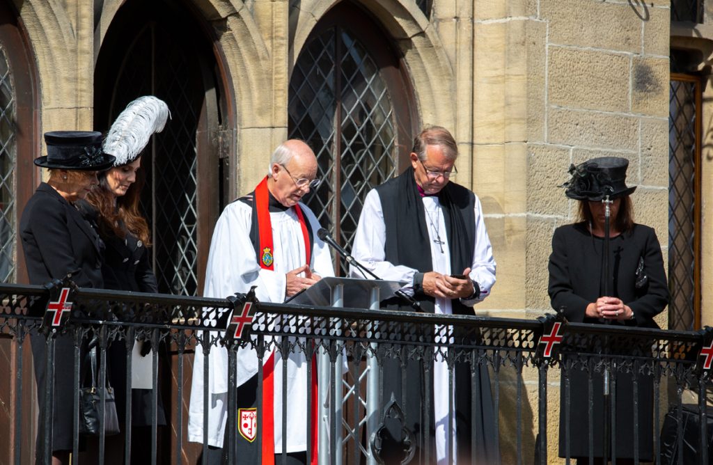The Ascension Proclamation Ceremony was opened by the Lord Lieutenant of County Durham Mrs Sue Snowdon. The Proclamation was read by the High Sheriff of County Durham and prayers were read by the High Sheriff’s chaplain the Reverend Peter Fisher and the Right Reverend the Bishop of Durham.