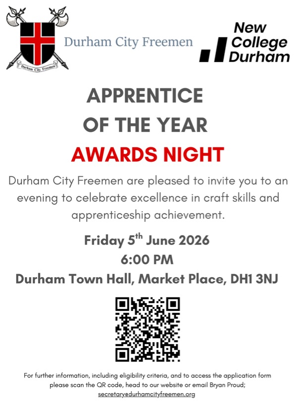 “Celebrating Excellence, Investing in the Future”. What are the Awards?The Durham City Freemen Apprentice Awards recognise apprentices who demonstrate outstanding skills, excellence, knowledge, and commitment…