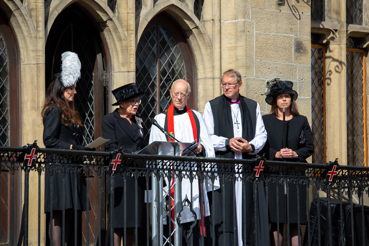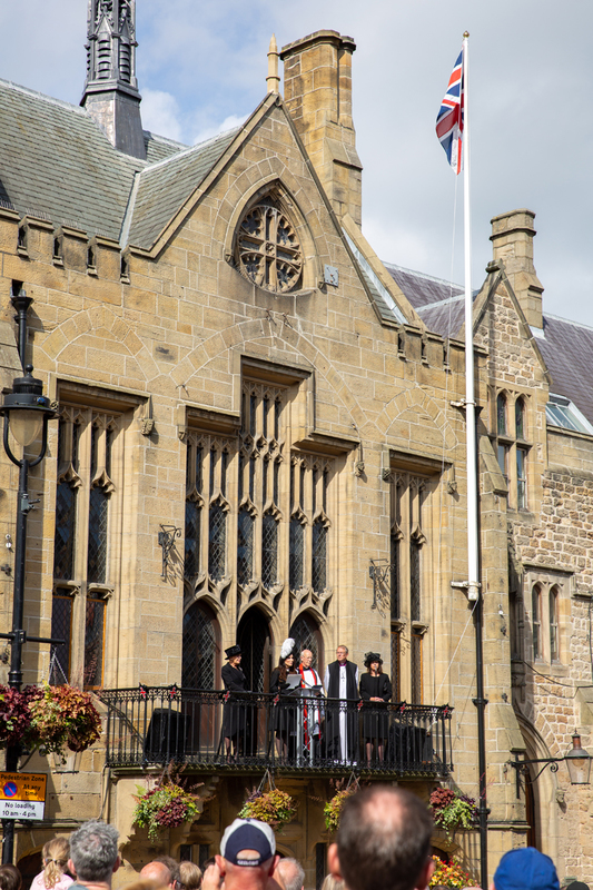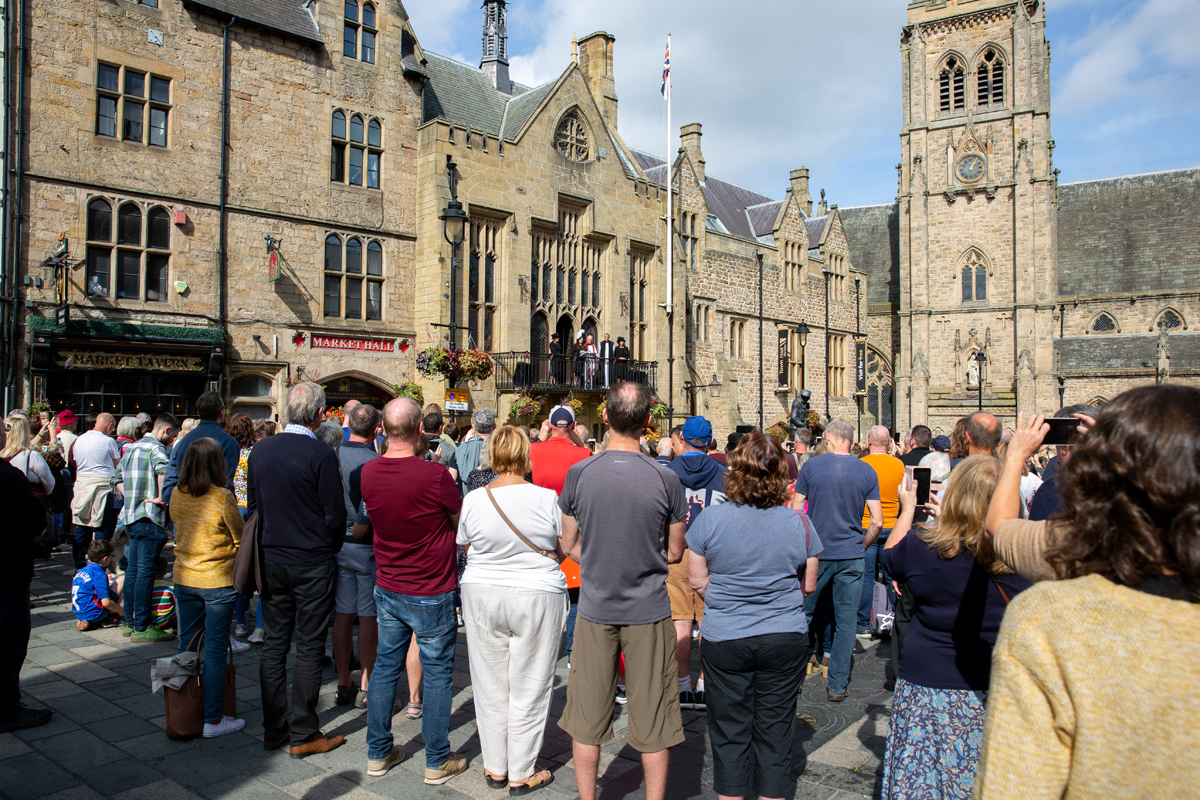 The Proclamation of King Charles III in Durham City took place on Sunday, September 11, 2022, at 1 pm in Durham Market Place, led by the High Sheriff of County Durham, Shona Harper-Wilkes, from the balcony of