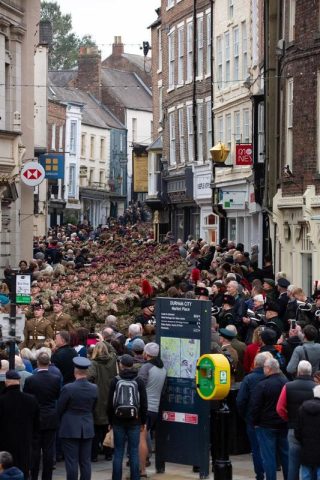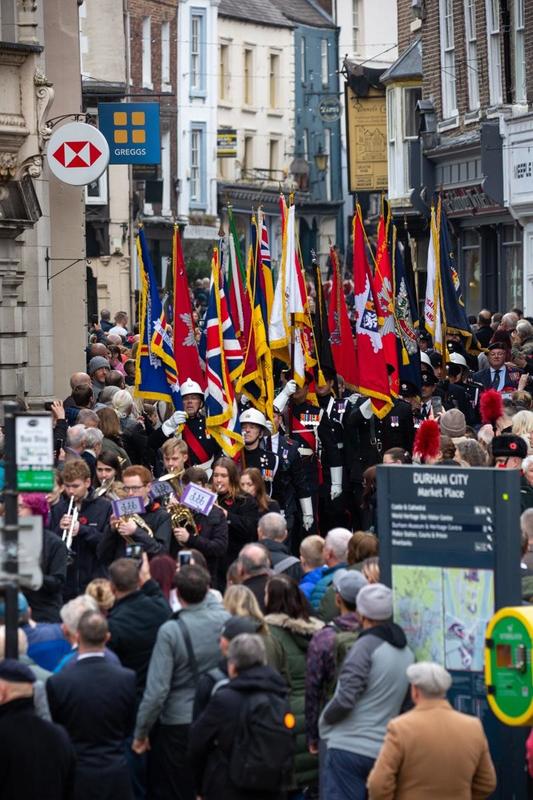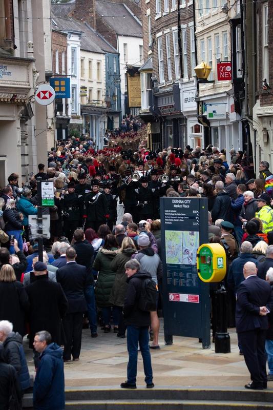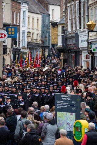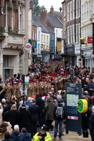 Durham City’s 2022 Remembrance Parade, held on Remembrance Sunday (November 13th), saw large crowds honouring the fallen, featuring military units, cadets, veterans, and community groups marching from Millennium Square to Palace Green for a service at the Cathedral, with special significance for the Durham Light Infantry (DLI) and HMS Bulwark, culminating in wreath-laying and a powerful show of civic togetherness. The event included Buglers from the Army Cadet Force and units from The Rifles, followed by the Cathedral service with public attendance.